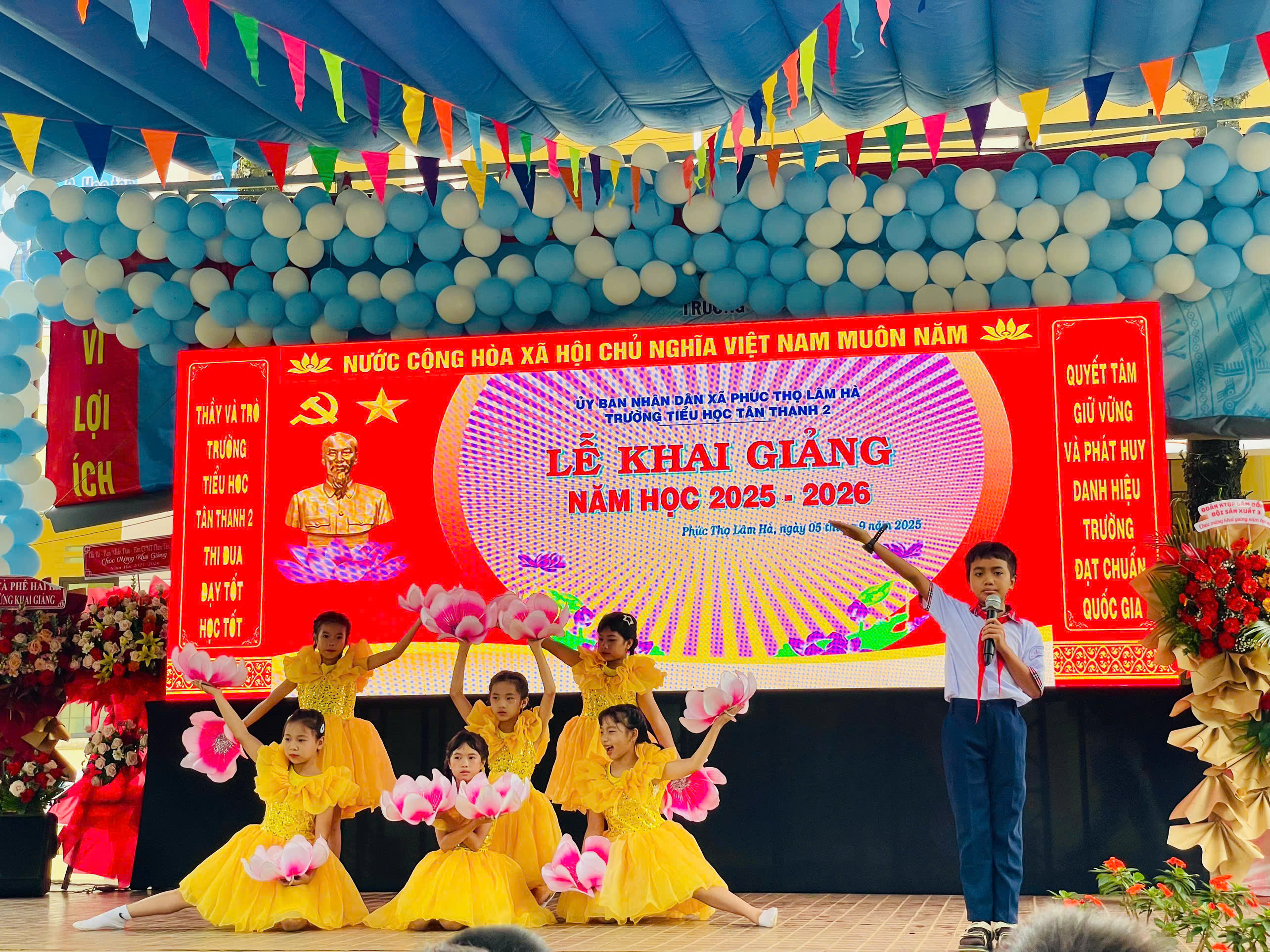 Hòa chung không khí háo hức khi bước vào năm học mới của các em học sinh cả nước. Trường TH Tân Thanh 2 cũng đã long trọng tổ chức lễ khai giảng vào sáng ngày 5/9. Sau đây là một số hoạt động diễn ra trong buổi lễ: